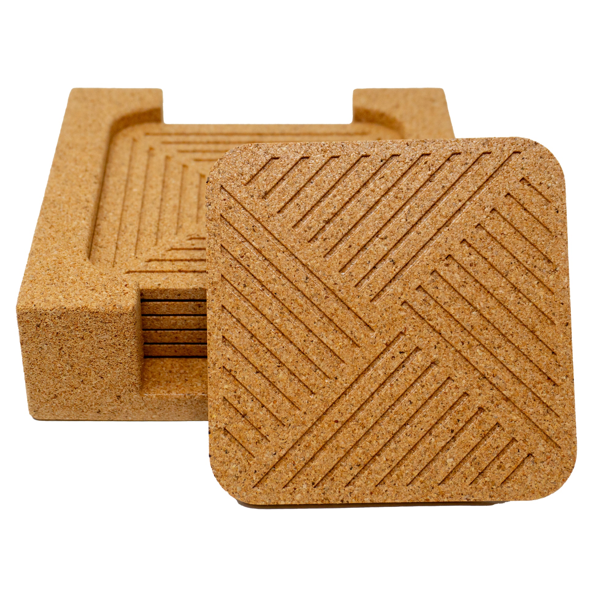 - 6 Premium Coasters – Includes six durable, square cork coasters with precision-cut grooves for better grip and spill resistance.